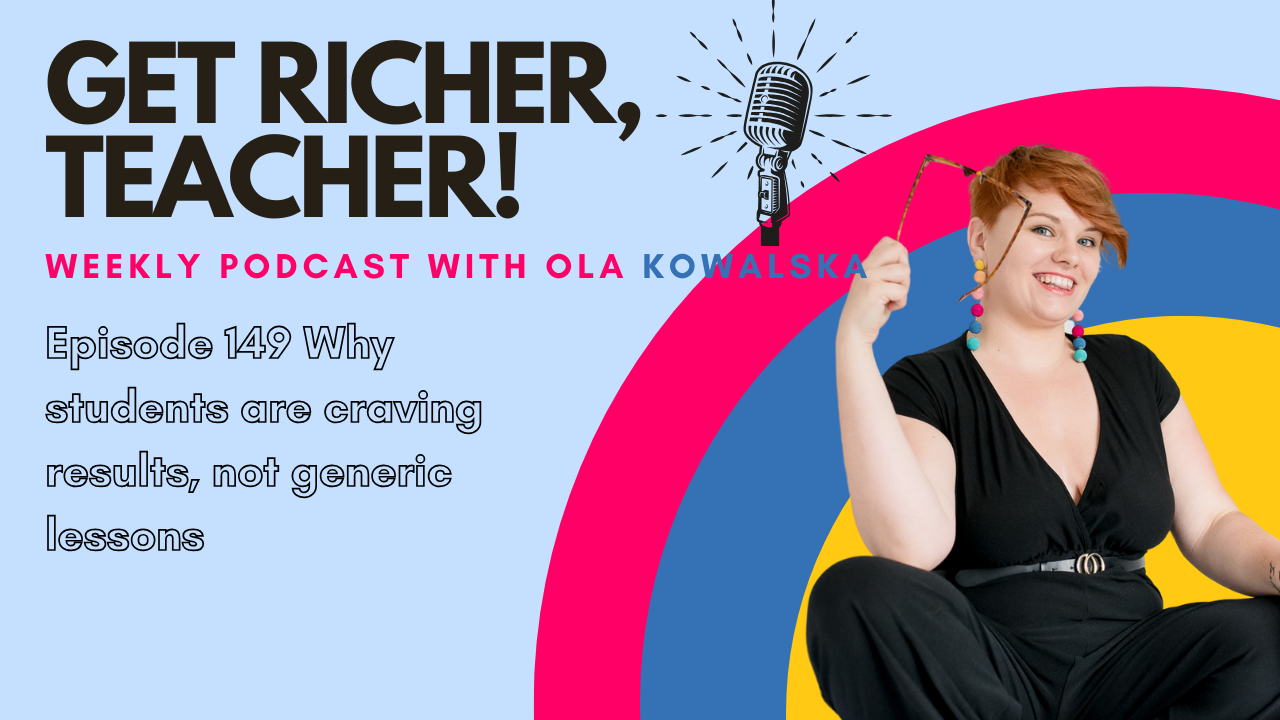 How to shift from offering generic lessons to creating meaningful, results-driven language learning experiences? In episode 149 of Get richer, teacher podcast tI’m breaking down why students are done with generic classes and are craving real outcomes – and what we as language pros can do to truly deliver.